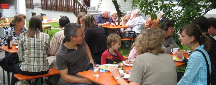 Nach dem Gottesdienst treffen wir uns im Gemeindehausgarten zum gemeinsamen Mittagessen, unterhalten und spielen. Aber auch Kaffee und Kuchen fehlen natürlich nicht. In der Regel endet das Sommerfest so gegen 16.00 Uhr.