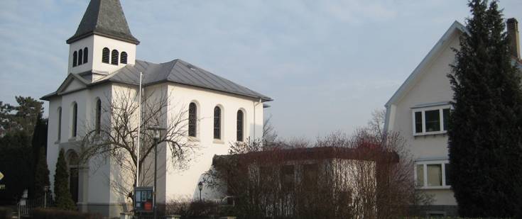 Die Evangelische Kirchengemeinde besitzt drei Gebäude, die allerdings alle aneinander gebaut sind.